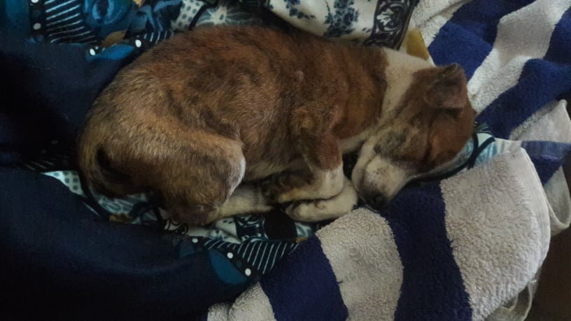 We rescued a pup who was in a road accident and was struggling to walk. Her back leg had wounds which were full of maggots and she was very weak. After a bit of TLC she began to walk and is now a right bloody nuisance.