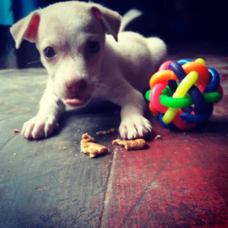 We caught a female dog to sterilize and the next day she gave birth to 5 pups!!! Only 2 survived as they were very premature. One is named Joy and is being fostered until a permanent home can be found. The other was adopted to a local family.